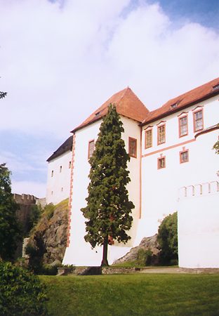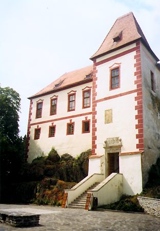 Hrad je obklopen ze tří stran předhradím, které bývalo uzavřeno hradebními zdmi. Z nich se dochovaly pouze krátké úseky na jižní straně věžového paláce a při bývalé hranolové vstupní věži. Vstupním prostorem je dnes brána v mohutné novogotické věži z druhé poloviny 19. století.
