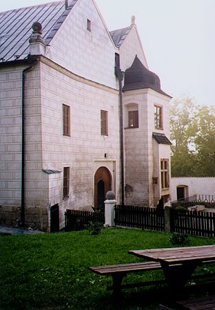 Zámek, původně ovšem gotický hrad, se tyčí na skalnatém ostrohu nad Hutním rybníkem ve stejnojmenném městečku, známém jako město perleti, ležícím při říčce Žirovnici asi 11 km jihovýchodně